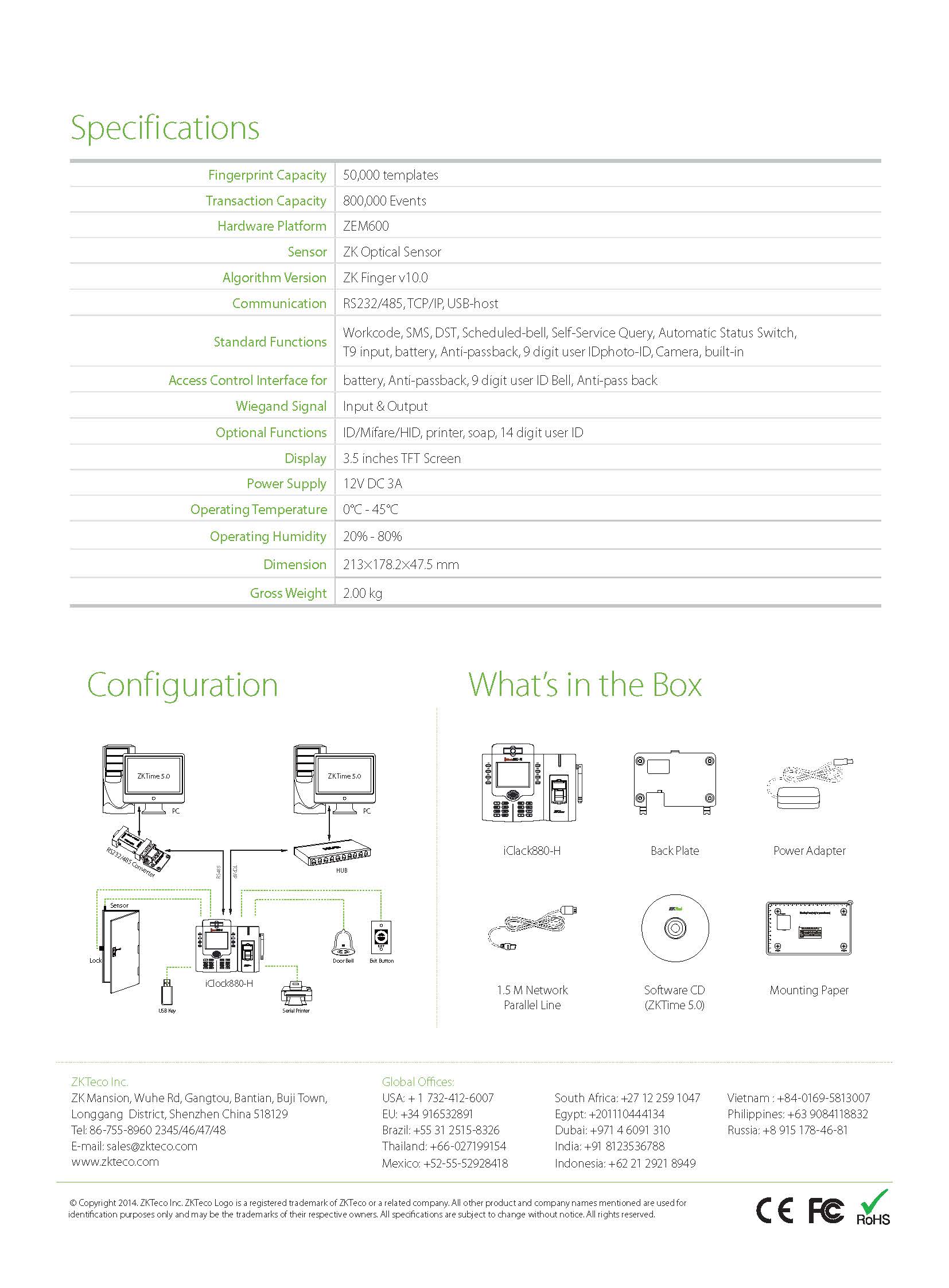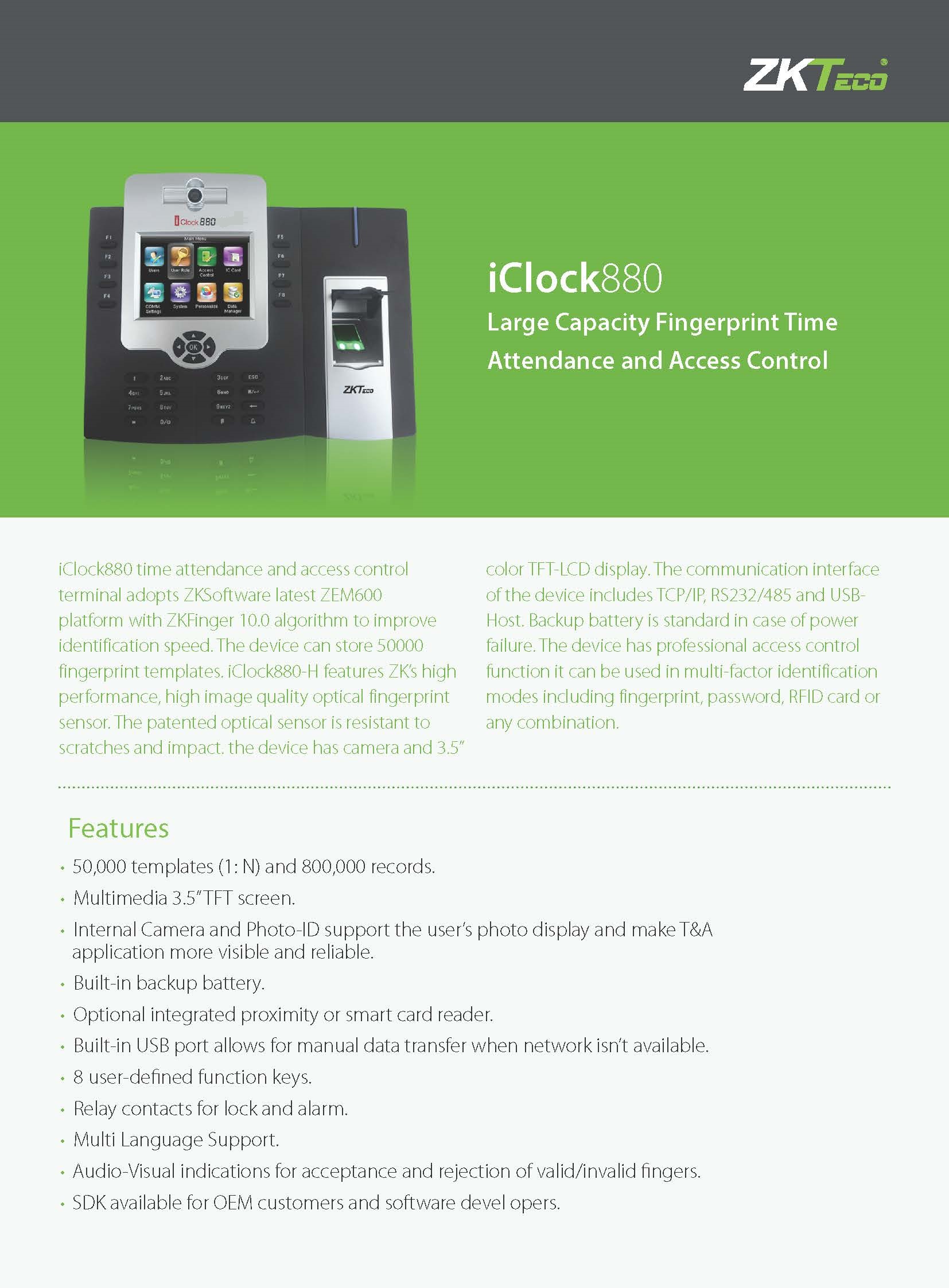 เครื่องสแกนลายนิ้วมือรุ่น Iclock880 (มีกล้อง)